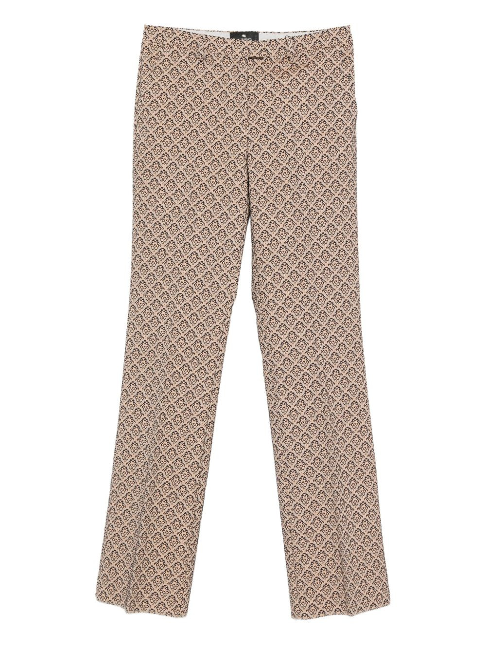 damask-pattern trousers Highlights - Beige - Damask pattern - High waist - Button fly - Flat front Made in Italy Composition Cotton 59%, Polyester 20%, Nylon 19%, Elastane 2% SIZE & FIT Model measurements Height 5 ft 9 in(1.75 m) Bust/Chest 32.67 in(83 cm) Hips 36.22 in(92 cm) Waist 24.8 in(63 cm) Washing instructions Dry Clean Only