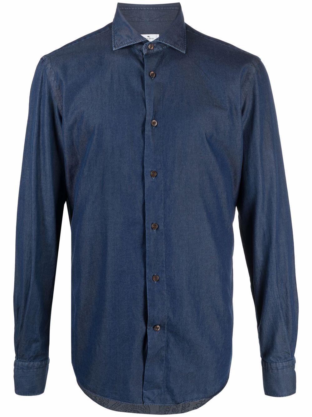 Denim cotton shirt blue cotton classic collar front button fastening long sleeves buttoned cuffs curved hem Made in Italy Composition Cotton 100% SIZE & FIT Model measurements Height 6 ft 2 in(1.89 m) Bust/Chest 35.43 in(90 cm) Hips 36.61 in(93 cm) Waist 28.74 in(73 cm) Washing instructions Machine Wash