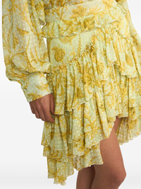 dotted floral-motif mini skirt Highlights - Yellow - Dotted print - Floral motif - Ruffled trim Made in Italy Composition Outer: Silk 85%, Viscose 15% Lining: Polyester 100% Washing instructions Read Manufacturer Guidelines