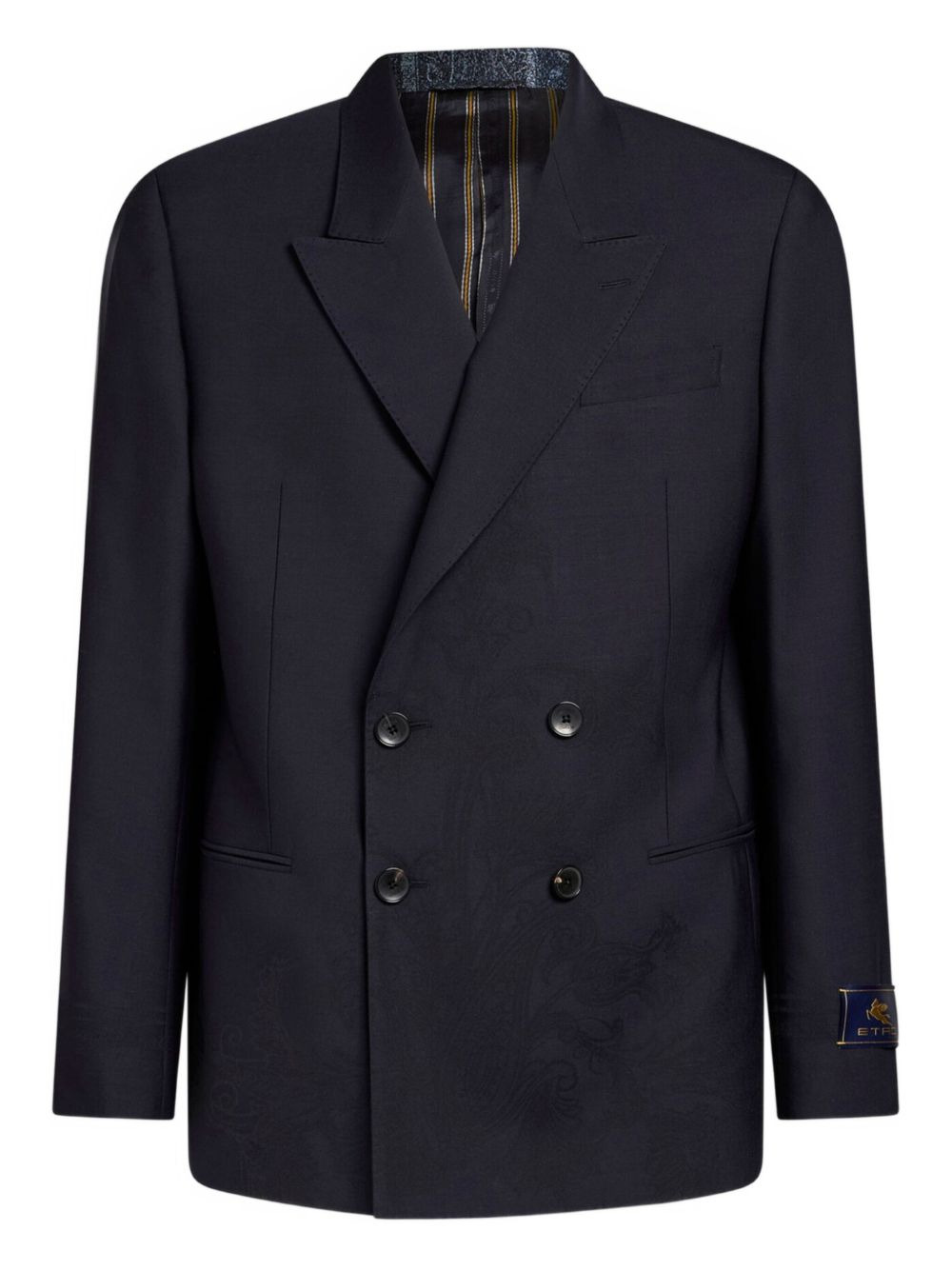 double-breasted jacket Highlights - Blue - Double-breasted closure - Peak lapels - Logo patch - Buttoned cuffs Made in Italy Composition Fabric 100% Washing instructions Read Manufacturer Guidelines