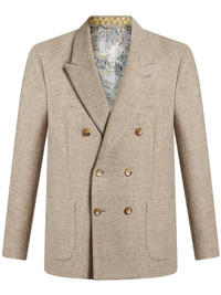 double-breasted peak-lapel blazer Highlights - Beige - Peak lapels - Double-breasted button fastening - Logo-engraved buttons - Long sleeves - Two side patch pockets - Straight hem - Contrast lining Made in Italy Composition Fabric 100%