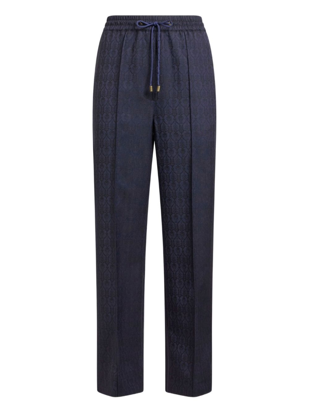 drawstring jacquard trousers Highlights - Dark blue - Patterned jacquard - Elasticated drawstring waistband - Side slit pockets - Cropped Made in Italy Composition Wool 100% Washing instructions Read Manufacturer Guidelines