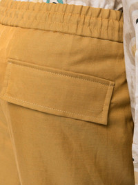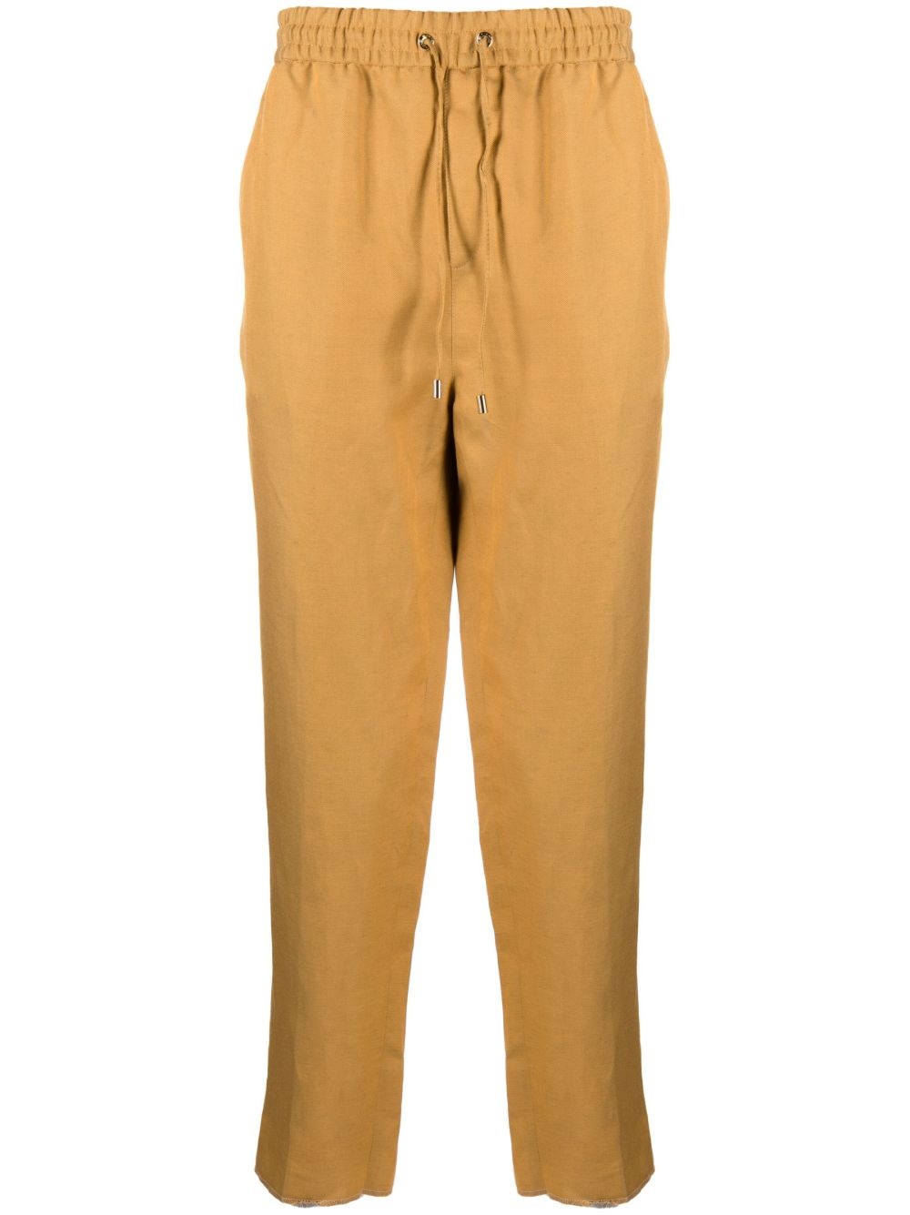 drawstring-waist cropped trousers Highlights - Caramel brown - Linen blend - Elasticated drawstring waistband - Two side slit pockets - Two rear flap pockets - Straight leg - Cropped Made in Italy Composition Lyocell 55%, Linen/Flax 45% SIZE & FIT Model measurements Height 6 ft 2 in(1.87 m) Bust/Chest 37 in(94 cm) Hips 33.85 in(86 cm) Waist 27.95 in(71 cm) FittingInformation Designed for a relaxed tapered leg, allowing a comfortable loose fit above the knee with a closer fit towards the calves The elasticated waist allows for a comfortable fit Made from a midweight non-stretch fabric This piece fits true to size – take your usual size Washing instructions Dry Clean Only