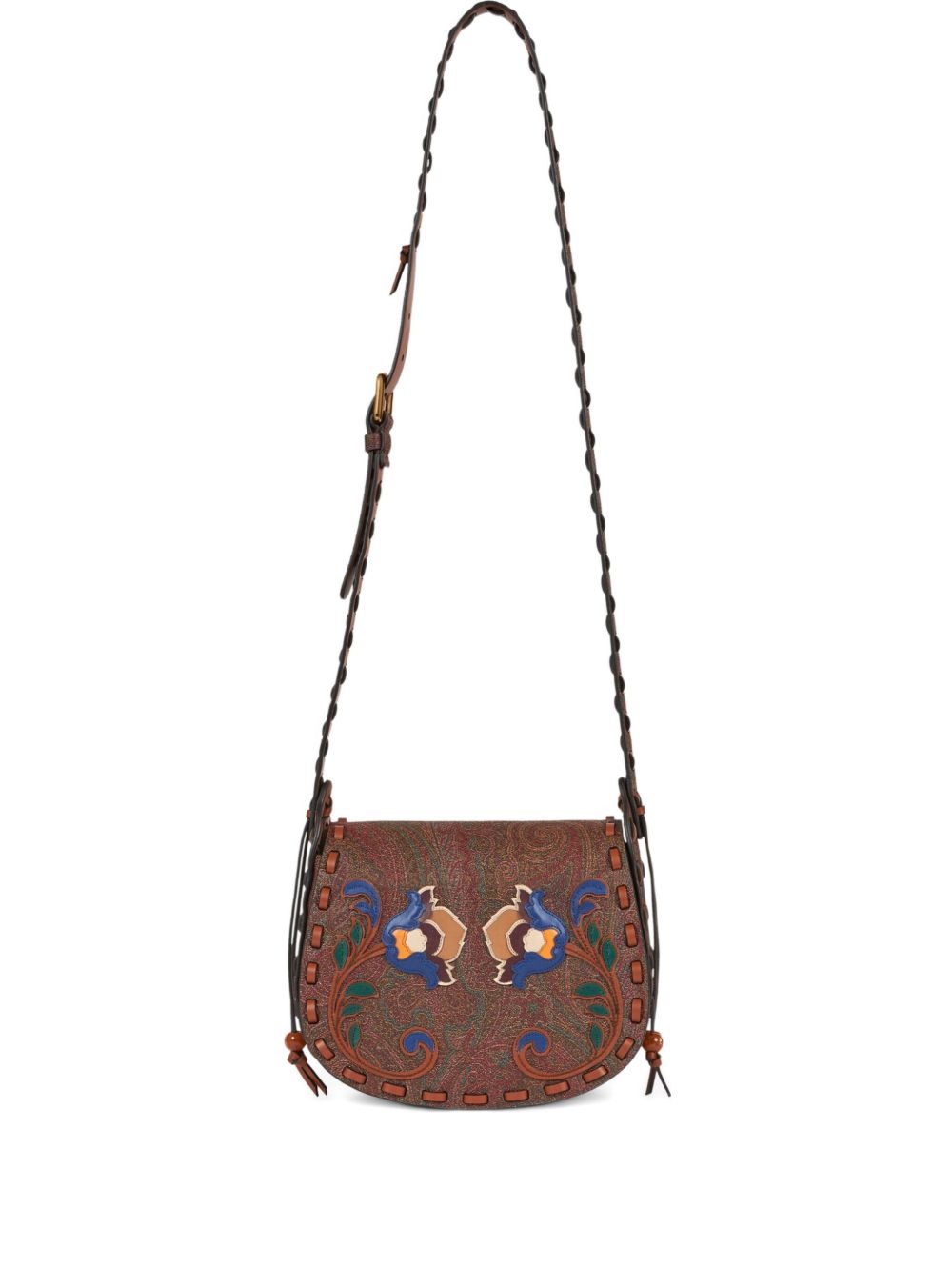 Drya cross body bag Highlights - Cognac brown - Foldover top with magnetic fastening - Adjustable shoulder strap - Internal patch pocket - Paisley print Made in Italy Composition Outer: PVC 100%, Polymethyl Methacrylate 100%, CALFSKIN 100% Lining: CALFSKIN 100% SIZE & FIT Measurement DEPTH 2.75 in(7 cm) HEIGHT 6.69 in(17 cm) WIDTH 8.26 in(21 cm)