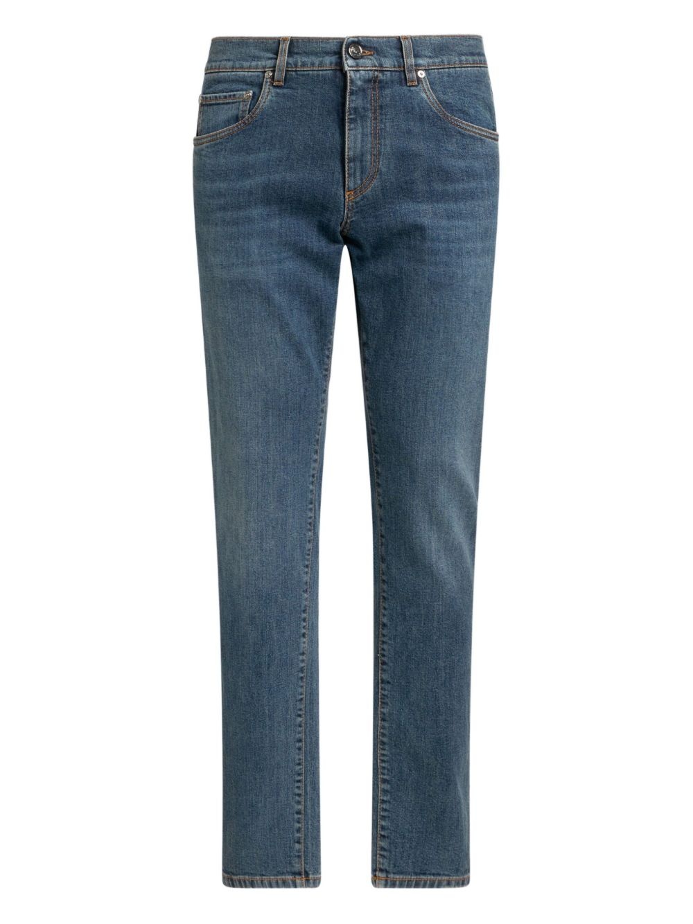 embroidered cotton jeans Highlights - Blue - Concealed fly and button fastening - Belt loops - Classic five pockets - Slim cut Made in Italy Composition Cotton 98%, Elastane 2% Washing instructions Read Manufacturer Guidelines