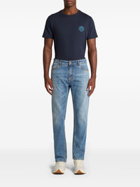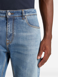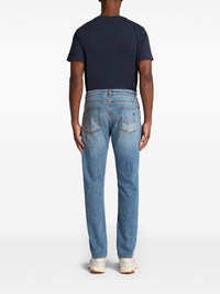 embroidered jeans Highlights - Light blue - Concealed fly and button fastening - Classic five pockets - Embroidered motif Imported Composition Cotton 90%, Elastane 10%