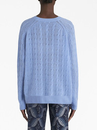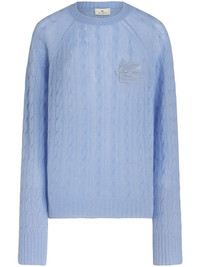 embroidered-logo cable-knit cashmere jumper Highlights - Light blue - Cashmere - Ribbed detailing - Cable knit - Embroidered logo at the chest - Round neck - Long raglan sleeves - Straight hem Made in Italy Composition Cashmere 100%