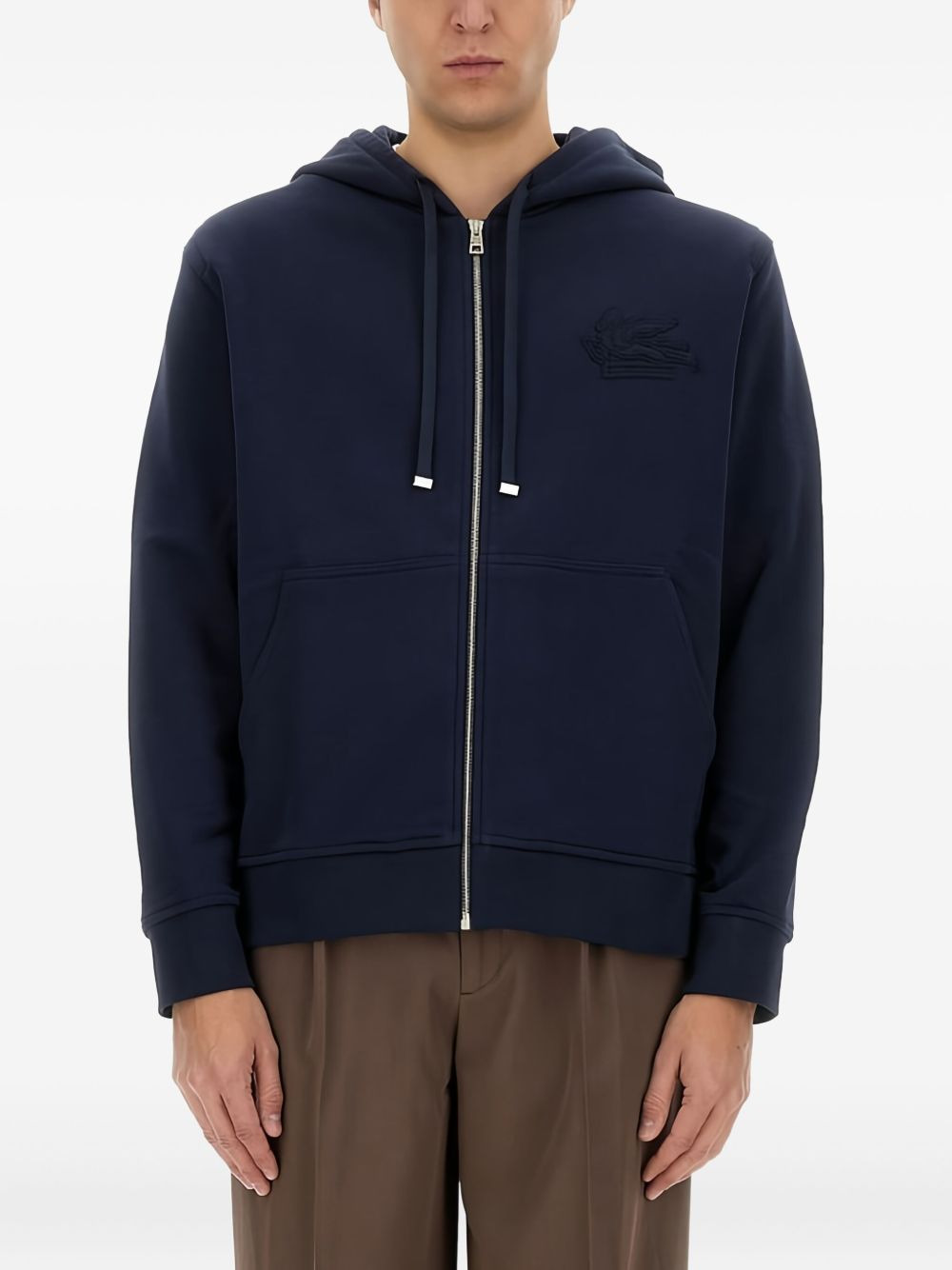 embroidered-logo zip-up hoodie Highlights - Navy blue - Hooded neckline - Zip fastening - Long sleeves - Embroidered logo - Pouch pocket Made in Italy Composition Cotton 90%, Polyester 10% Washing instructions Read Manufacturer Guidelines