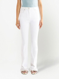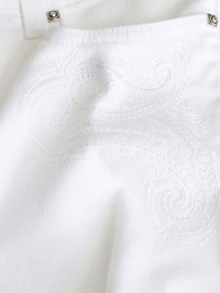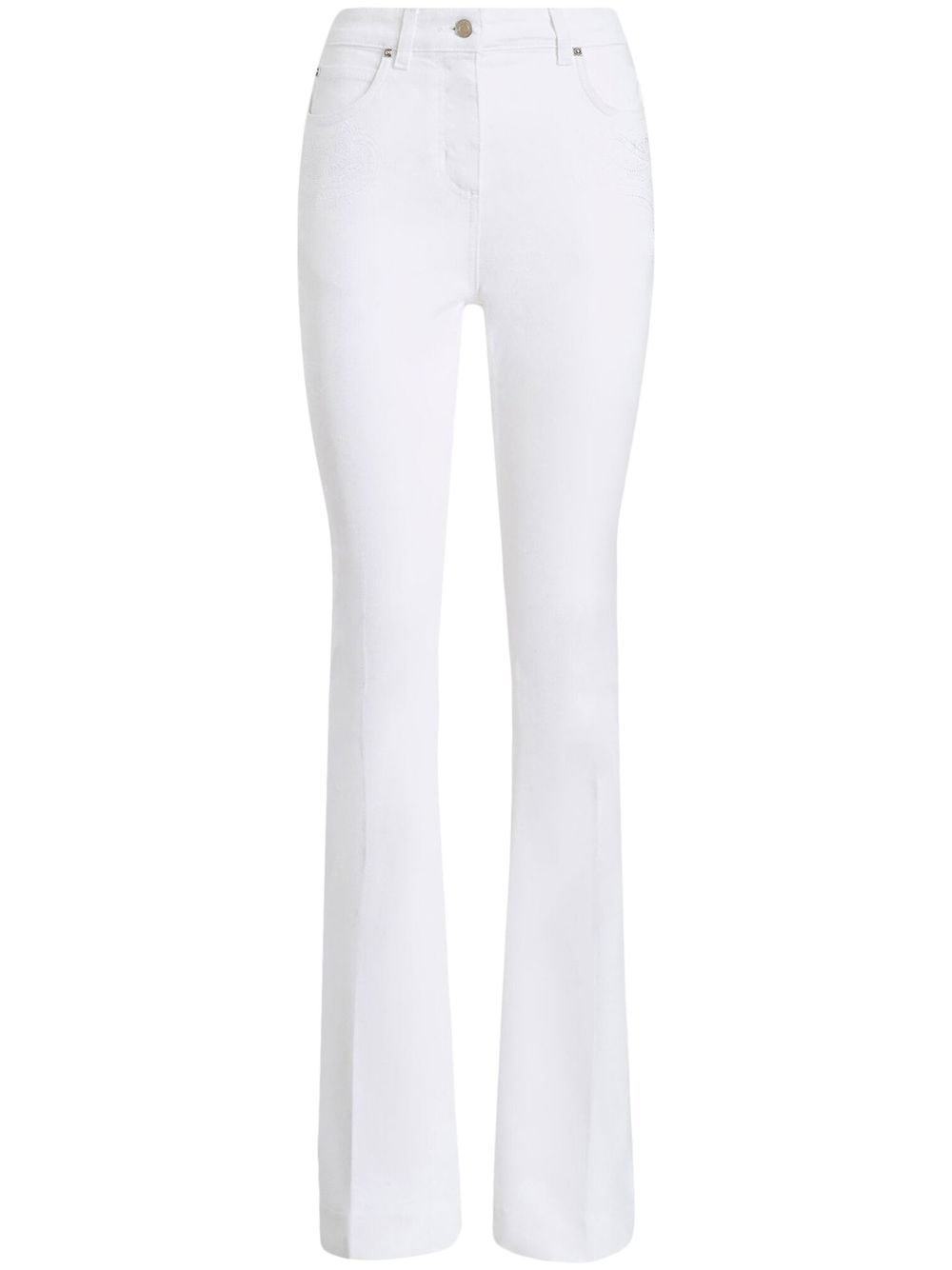 embroidered straight-leg jeans Etro showcases refined Italian style with this pair of white jeans which are decorated with embroidered floral detailing and neatly fringed hem. Made in Italy Composition Cotton 98%, Elastane 2%