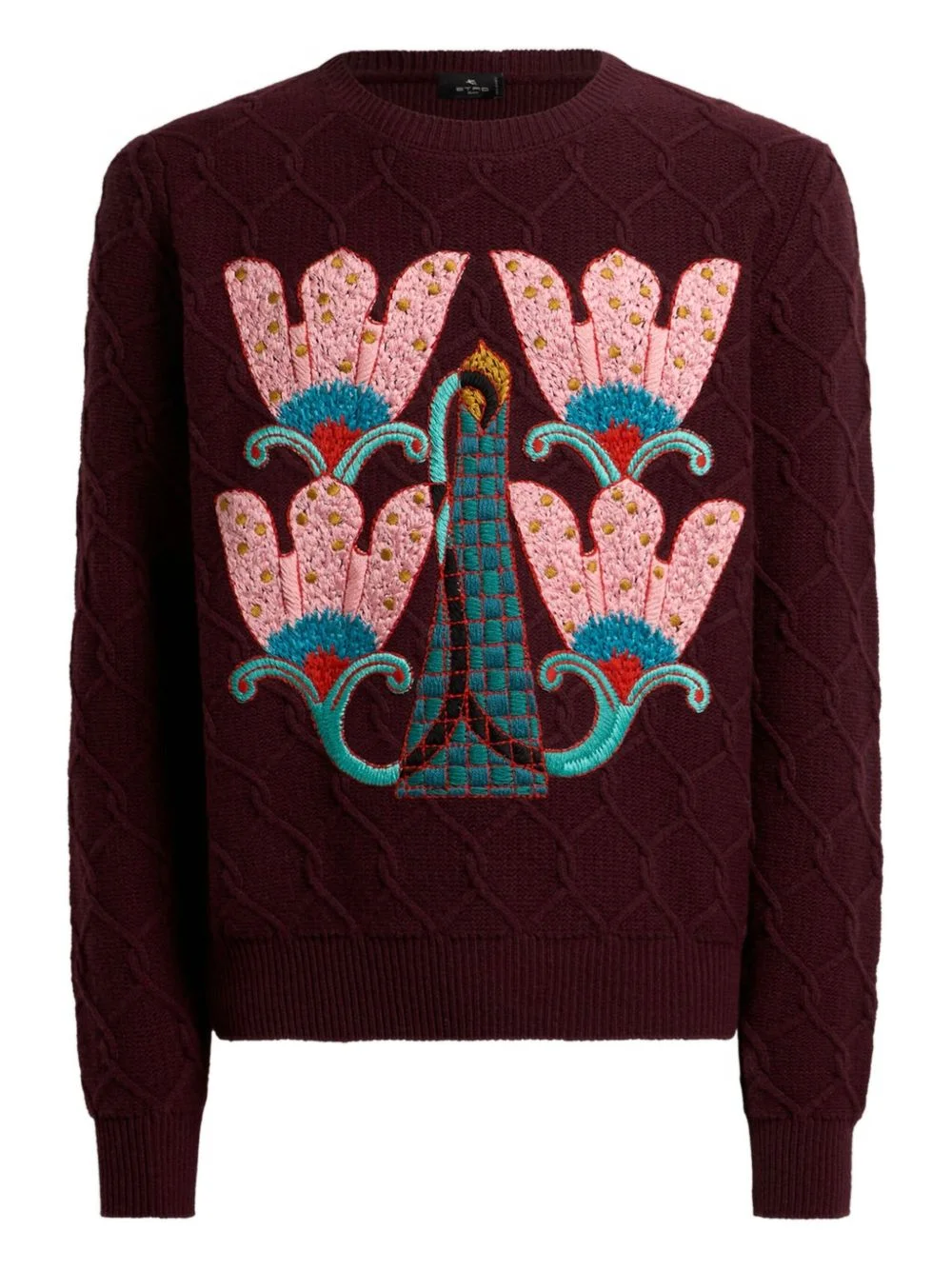 embroidered wool sweater Highlights - Dark red - Flower embroidery - Round neck - Long sleeves - Ribbed hem Made in Italy Composition Wool 100% Washing instructions Read Manufacturer Guidelines