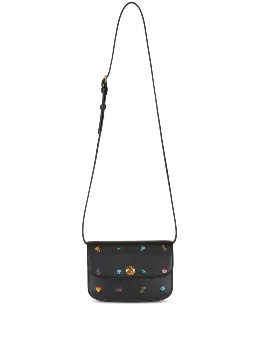 Essential floral-embroidered mini shoulder bag Highlights - Black/multicolour - Calf leather - Gold-tone logo plaque - Floral embroidery - Foldover top with magnetic fastening - Partitioned compartment - Adjustable shoulder strap Made in Italy Composition Outer: Calf Leather 100%, Cotton 76%, Polyester 24% SIZE & FIT Measurement DEPTH 1.73 in(4.4 cm) HEIGHT 5.51 in(14 cm) WIDTH 7.48 in(19 cm)