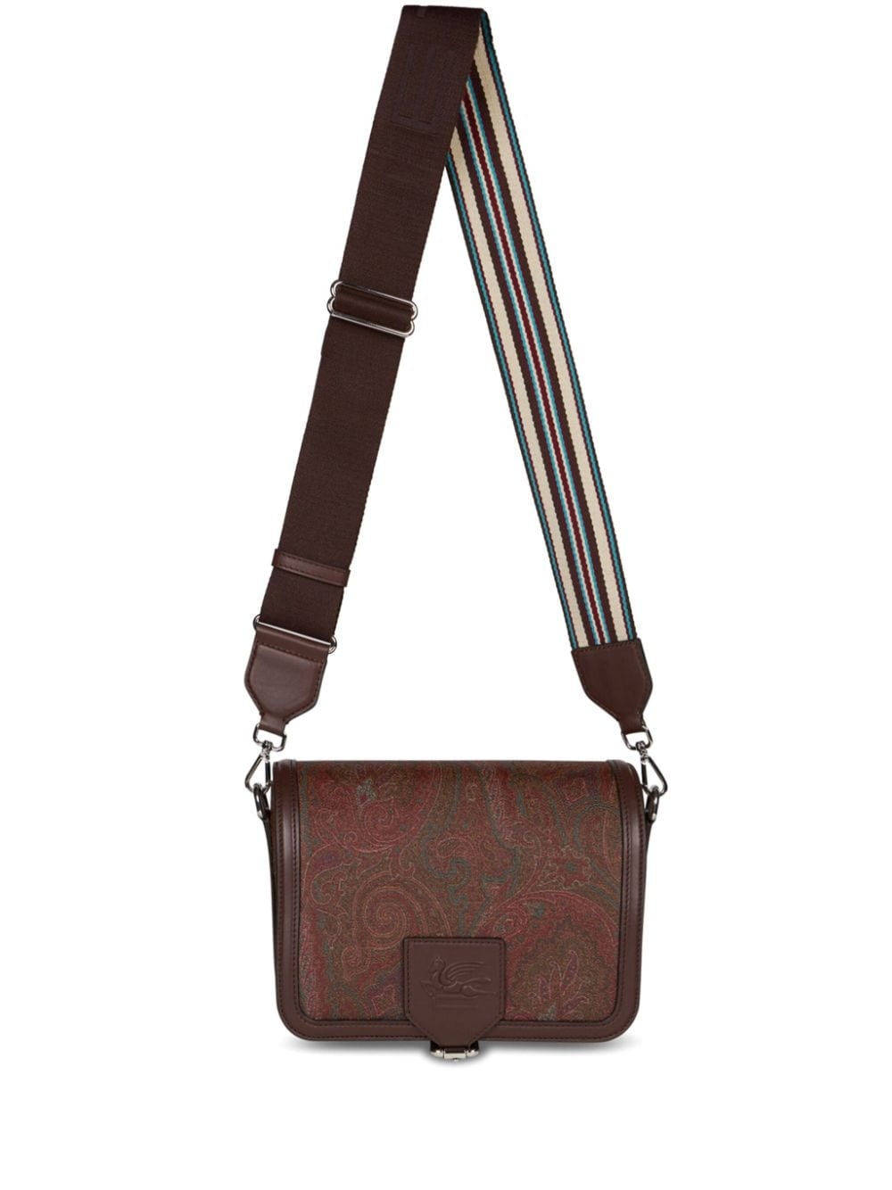 Etro Essential bandana-print crossbody bag Highlights - Brown - Bandana print - Leather trim - Debossed logo to the front - Foldover top - Buckle fastening - Front patch pocket - Main compartment - Embossed internal logo - Internal zip-fastening pocket - Checked lining - This piece comes complete with a protective dust bag. Made in Italy Composition Outer: Calf Leather 100%, PVC 100%, Cotton 76%, Polyester 24% Lining: Polyester 100%