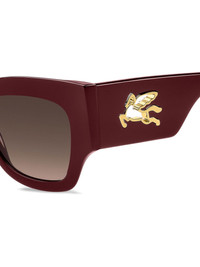 Etromania sunglasses Highlights - Burgundy - Tinted lenses - Logo plaque at the arm - Curved tips - These glasses come with a protective case. Imported Composition Acetate 100% SIZE & FIT Measurement Arm Length 5.51 in(14 cm) Bridge Width 0.86 in(2.2 cm) Lens Diameter 1.73 in(4.4 cm)