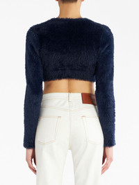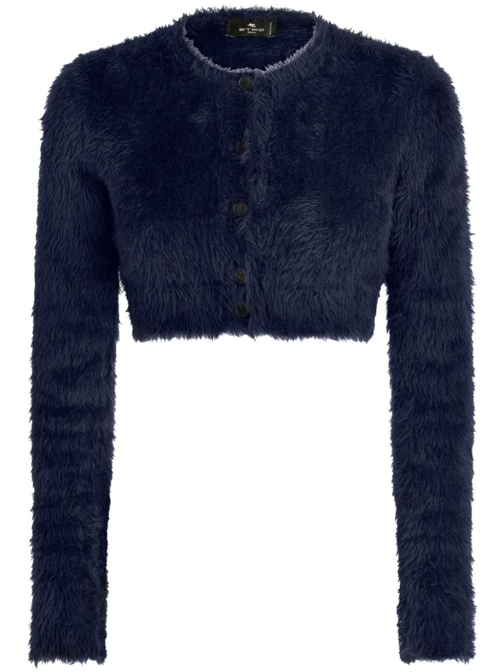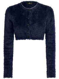 brushed-knit cropped cardigan Highlights - Navy blue - Knitted construction - Brushed effect - Crew neck - Front button fastening - Long sleeves - Cropped Made in Italy Composition Nylon 100% Washing instructions Read Manufacturer Guidelines
