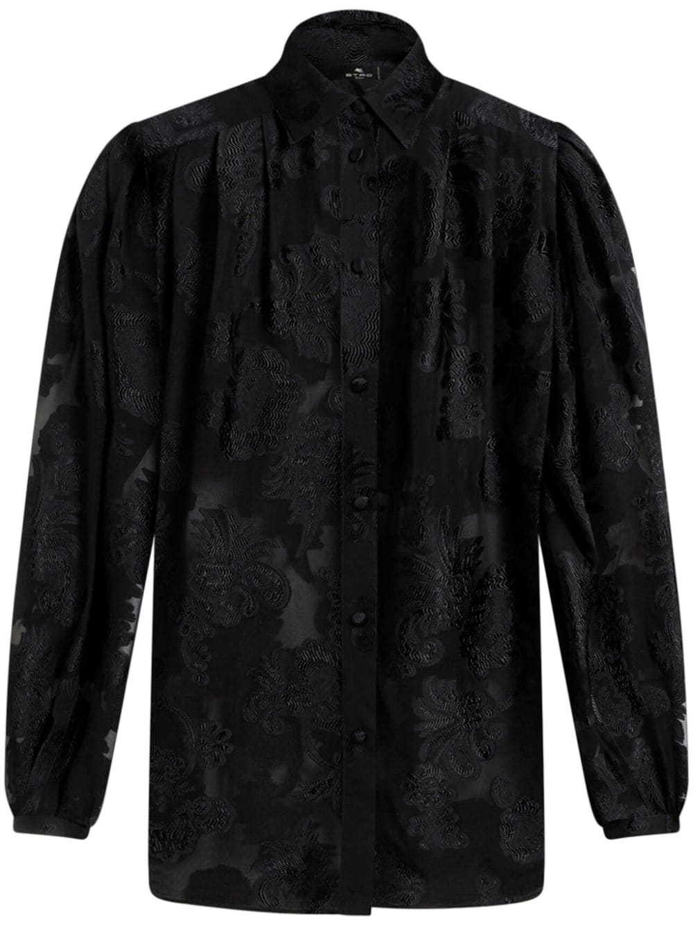 fil-coupe effect chiffon shirt Highlights - Black - Semi-sheer construction - Chiffon - Fil-coupe effect - Front button fastening - Spread collar - Long puff sleeves - Straight hem Made in Italy Composition Fabric 100%