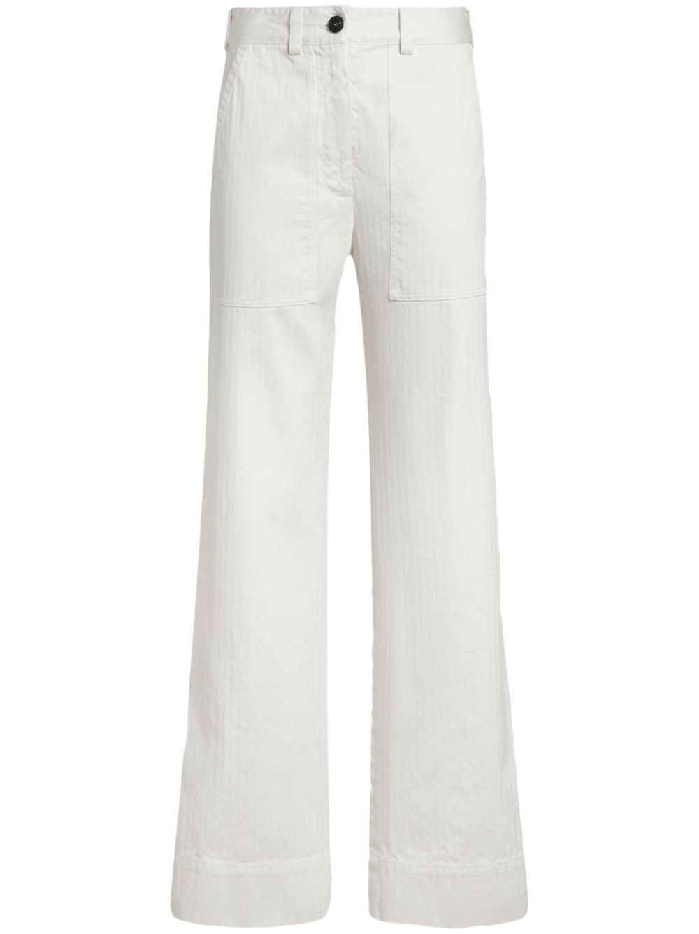 flared trousers Highlights - White - Concealed fly and button fastening - Belt loops - Two side inset pockets - Rear patch pocket Made in Italy Composition Cotton 100%