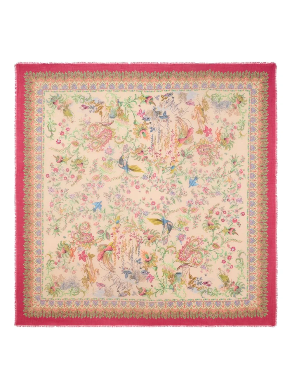 CASHMERE-BLEND SHAWL WITH FLORA AND FAUNA MOTIF