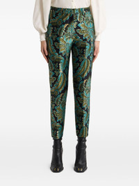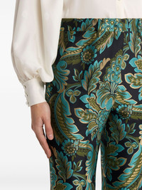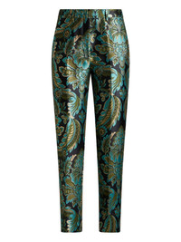 floral-bee jacquard trousers Highlights - Green - Floral jacquard - Bee motif - Gold accents - Straight leg - High waist Made in Italy Composition Polyester 49%, Viscose 27%, Cotton 24% Washing instructions Read Manufacturer Guidelines