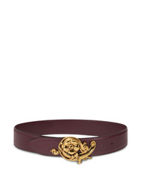 floral-buckle leather belt Highlights - Burgundy - Leather belt - Gold-tone buckle - Flower detail - Ornate design - Buckle fastening Made in Italy Composition Calf Leather 100%