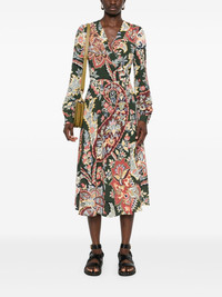 floral crepe wrap midi dress Highlights - Green/multicolour - Crepe texture - All-over floral print - Wrap design - V-neck - Long sleeves - Buttoned cuffs - Mid-length - Straight hem - Tied waist Made in Italy Composition Polyester 98%, Elastane 2% SIZE & FIT Model measurements Height 5 ft 10 in(1.77 m) Bust/Chest 32.28 in(82 cm) Hips 35.03 in(89 cm) Waist 25.19 in(64 cm) Measurement SLEEVE LENGTH 24.8 in(63 cm) HIPS 45.66 in(116 cm) LENGTH 44.88 in(114 cm) WAIST 25.98 in(66 cm) FittingInformation Designed for a wraparound style that can be adjusted to your preference The adjustable tie waist gives a more adaptable and personalised fit Made from a midweight fabric This piece fits true to size – take your usual size