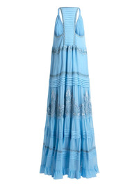 floral-embroidered silk dress Highlights - Sky blue - Front lace-up fastening - V-neck - Sleeveless - Tiered skirt Imported Composition Silk 100%