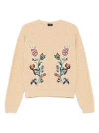 floral-embroidered sweater Highlights - Beige - Crew neck - Floral embroidery - Long sleeves - Ribbed cuffs and hem Made in Italy Composition Wool 90%, Cashmere 10%