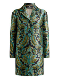 floral-jacquard coat Highlights - Green - Floral jacquard - Gold accents - Button fastening - Notched lapel - Long sleeves Made in Italy Composition Polyester 49%, Viscose 27%, Cotton 24% Washing instructions Read Manufacturer Guidelines