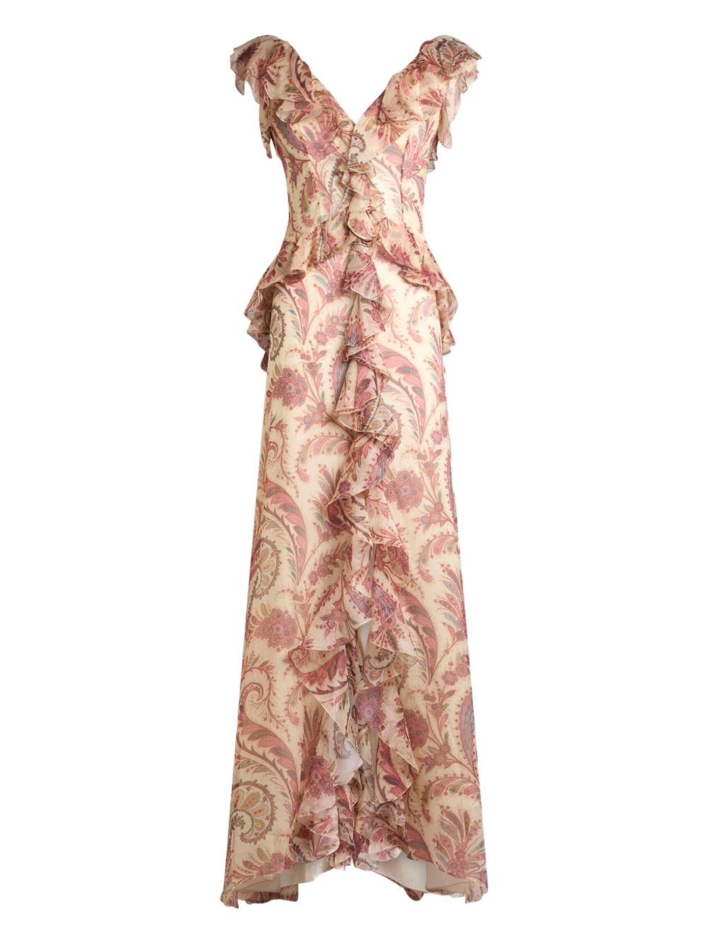 floral-motif v-neck dress Highlights - Beige - Ruffled detail - V-neck - Floral-motif - Short sleeves - Open back Made in Italy Composition Silk 100%