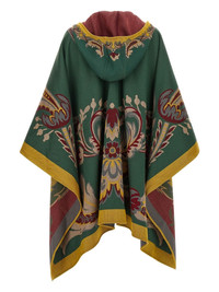 floral paisley hooded cape Highlights - Green - Floral paisley pattern - Hood - Leather lace closure - Tassel detail - Diagonal design Made in Italy Composition Leather 100%, Wool 86%, Viscose 14% Washing instructions Read Manufacturer Guidelines