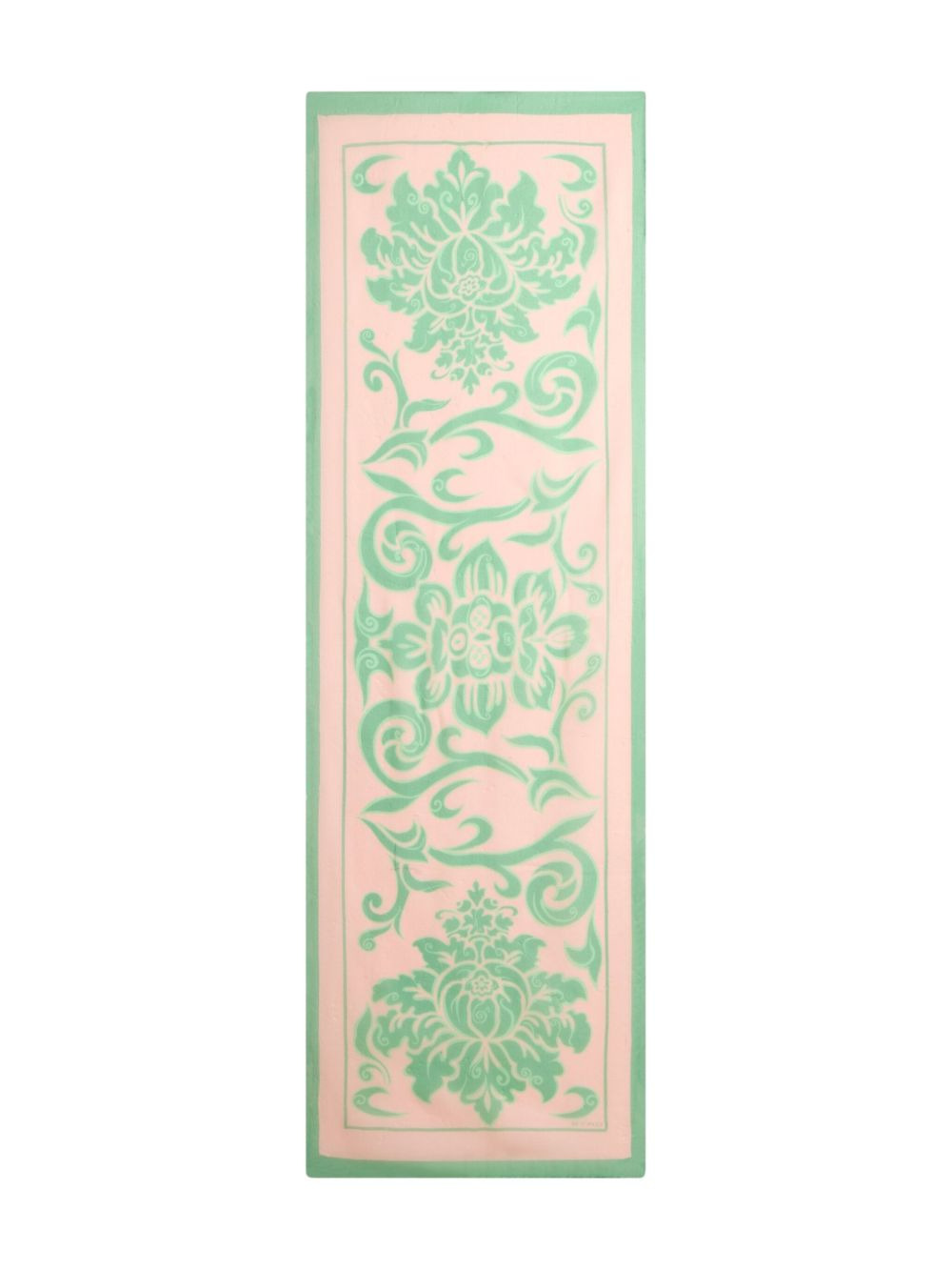 floral-patterned rectangular scarf Highlights - Light pink - Green-floral pattern - Rectangular shape Made in Italy Composition Silk 100% SIZE & FIT Measurement LENGTH 21.65 in(55 cm) WIDTH 6.29 in(16 cm)