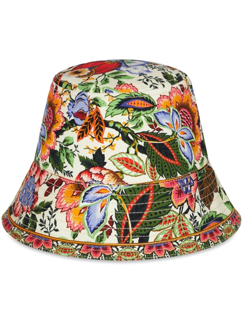 floral-print bucket hat Highlights - White/multicolour - Cotton - All-over logo print - Logo patch to the side - Narrow brim Made in Italy Composition Outer: Cotton 100% Lining: Viscose 100%