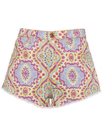 floral-print denim shorts Highlights - Blue/multicolour - Cotton blend - Stretch-design - Denim - All-over floral print - Logo patch to the rear - Frayed detailing - Belt loops - Classic five pockets - Thigh-length - Front button and zip fastening Made in Italy Composition Lining: Cotton 100% Outer: Cotton 97%, Spandex/Elastane 3% SIZE & FIT Model measurements Height 5 ft 10 in(1.78 m) Bust/Chest 33.46 in(85 cm) Hips 36.22 in(92 cm) Waist 23.22 in(59 cm) FittingInformation Designed for a slim fit that sits just away from the body offering a close yet comfortable fit Constructed from stretch denim, this piece offers a stretch fit with durability This piece fits true to size – take your usual size