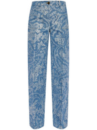 floral-print jeans Highlights - Light blue - Concealed fly and button fastening - Belt loops - Two side slit pockets - Decorative button detailing Imported Composition Cotton 61%, Linen/Flax 39%