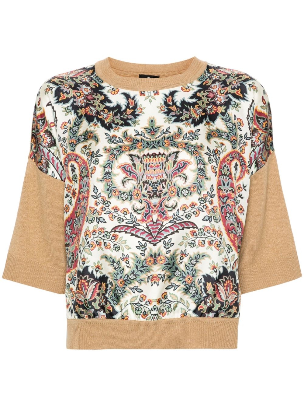 floral-print jumper Highlights - Beige/multicolour - Knitted construction - Silk panelling with floral print - Round neck - Three-quarter length sleeves - Ribbed cuffs and hem - Straight hem Made in Italy Composition Silk 100%, Wool 45%, Viscose 30%, Cashmere 25% SIZE & FIT Model measurements Height 5 ft 10 in(1.78 m) Bust/Chest 33.07 in(84 cm) Hips 36.61 in(93 cm) Waist 24.8 in(63 cm) FittingInformation Designed for a relaxed fit, this piece allows for comfort and movement when worn Made with a midweight knit, this piece offers some stretch This piece fits true to size – take your usual size