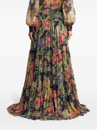 Tiered gathered floral-print silk-crepon maxi skirt