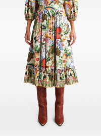 floral-print pleated midi skirt Highlights - White/multicolour - Cotton - All-over floral print - High-waisted - Box-pleat design - Concealed rear zip fastening - Peplum hem - Calf-length Made in Italy Composition Cotton 100% SIZE & FIT Measurement HIPS 43.3 in(110 cm) LENGTH 31.49 in(80 cm) WAIST 30.7 in(78 cm) Washing instructions Read Manufacturer Guidelines
