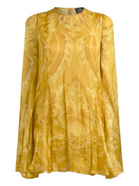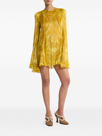 floral-print pleated mini dress Highlights - Gold - Floral print - Pleated skirt - Bell sleeves - Round neck - Long sleeves Made in Italy Composition Outer: Silk 100% Lining: Polyester 100% Washing instructions Read Manufacturer Guidelines