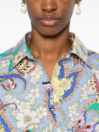 floral-print shirt Highlights - Light blue - Front button fastening - Buttoned-cuff sleeves - Long sleeves - Curved hem Made in Italy Composition Cotton 97%, Elastane 3% SIZE & FIT Model measurements Height 5 ft 10 in(1.77 m) Bust/Chest 29.92 in(76 cm) Hips 34.25 in(87 cm) Waist 23.62 in(60 cm) FittingInformation Designed for a slim fit that sits just away from the body offering a close yet comfortable fit The dart stitching adds structure and a closer fit in the torso of this piece Made from a midweight stretch fabric, this piece offers elasticity and flexibility when worn