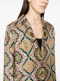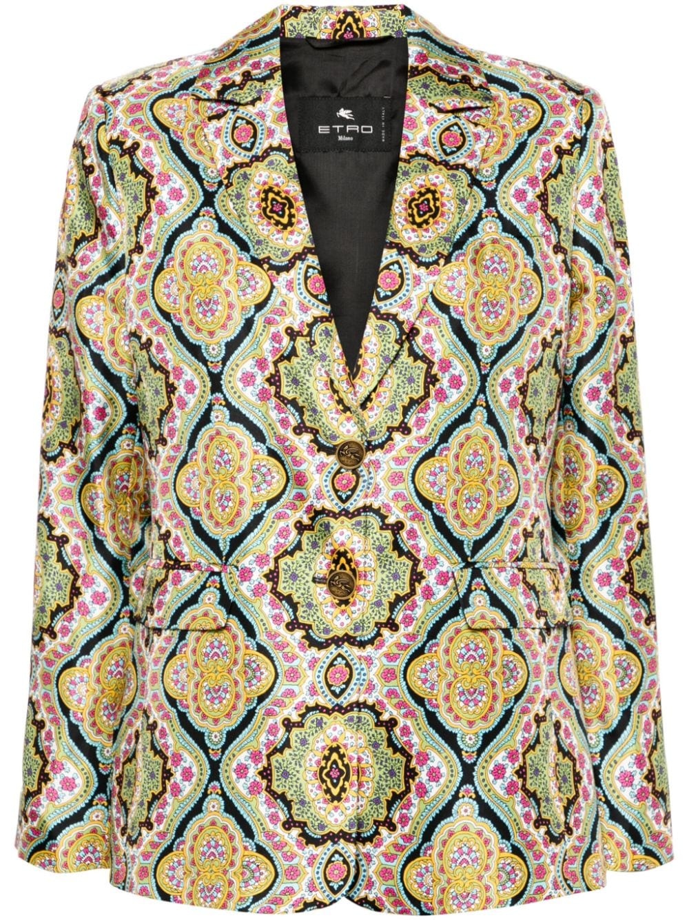 floral-print silk blazer Cut from pure silk, this ETRO blazer is decorated with a colourful floral print design throughout. Highlights - Green/multicolour - Silk - All-over floral print - Notched lapels - Front button fastening - Long sleeves - Chest welt pocket - Two side flap pockets Made in Italy Composition Outer: Silk 100% Lining: Viscose 100% SIZE & FIT Model measurements Height 5 ft 11 in(1.8 m) Bust/Chest 31.49 in(80 cm) Hips 36.22 in(92 cm) Waist 25.59 in(65 cm) Measurement LENGTH 26.77 in(68 cm) WAIST 31.49 in(80 cm) SLEEVE LENGTH 23.22 in(59 cm) FittingInformation Designed for a slim fit that sits just away from the body offering a close yet comfortable fit The internal shoulder pads offer a structured shape Made from a midweight non-stretch fabric This piece fits true to size – take your usual size Washing instructions Dry Clean Only