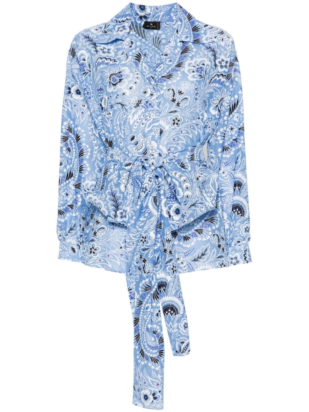 floral-print silk-cotton shirt Highlights - Blue - Silk-cotton blend - All-over floral print - Wraparound style - Classic collar - Long sleeves - Buttoned cuffs - Side slits - Straight hem - Front button fastening Made in Italy Composition Cotton 73%, Silk 27% SIZE & FIT Model measurements Height 5 ft 10 in(1.77 m) Bust/Chest 31.49 in(80 cm) Hips 35.82 in(91 cm) Waist 25.98 in(66 cm) Measurement SLEEVE LENGTH 18.11 in(46 cm) LENGTH 27.55 in(70 cm) FittingInformation Designed for a relaxed fit, this piece allows for comfort and movement when worn The adjustable tie waist gives a more adaptable and personalised fit Made from a lightweight non-stretch fabric This piece fits true to size – take your usual size