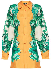 floral-print silk shirt Highlights - Tangerine orange - Front button fastening - Buttoned cuffs - Twist detailing - Long sleeves Made in Italy Composition Silk 100%