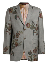 floral-print single-breasted jacket Highlights - Grey - Floral print - Single-breasted - Button fastening - Welt pockets - Notched lapels Made in Italy Composition Fabric 100% Washing instructions Read Manufacturer Guidelines