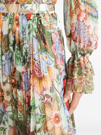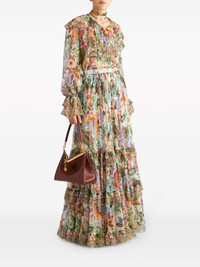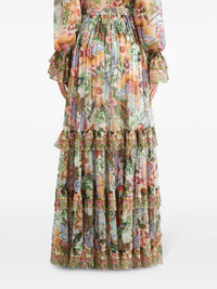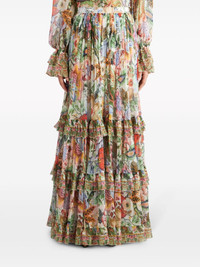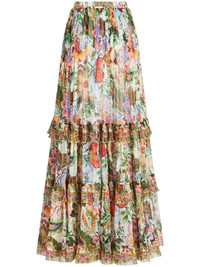 floral-print tiered silk skirt
