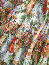 floral-print tiered silk skirt Highlights - White/multicolour - Silk - Plisse effect - All-over floral print - Ruffled trim - High-waisted - Tiered skirt - Concealed rear zip fastening - Floor-length Made in Italy Composition Lining: Polyester 100% Outer: Silk 100% SIZE & FIT Measurement LENGTH 45.27 in(115 cm) WAIST 27.55 in(70 cm) Washing instructions Read Manufacturer Guidelines