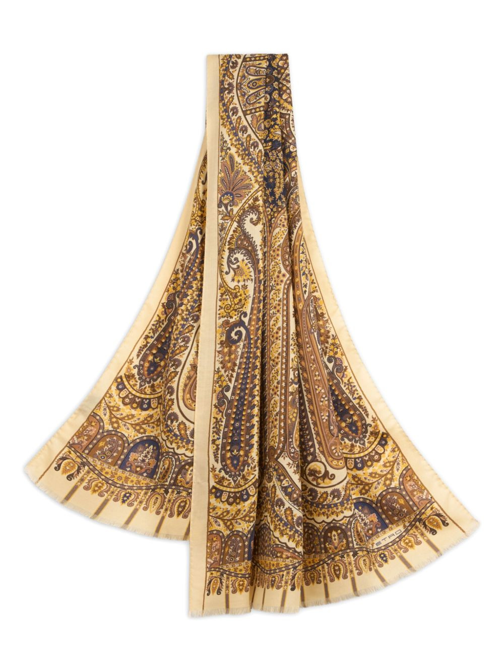 fringed paisley-print scarf Highlights - Neutrals - Paisley pattern - Wool-silk blend - Fringed edges - Detailed print Made in Italy Composition Wool 70%, Silk 30% SIZE & FIT Measurement LENGTH 55.11 in(140 cm) WIDTH 17.71 in(45 cm)