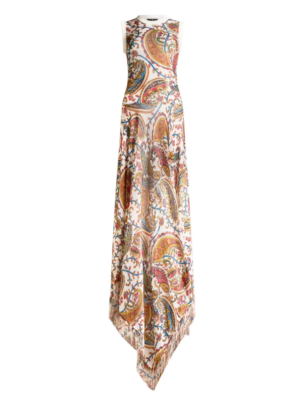fringing floral paisley maxi dress Highlights - Off-white and multicolour - Floral paisley print - Fringing - Knitted construction - Sleeveless - Round neck Made in Italy Composition Fabric 100% Washing instructions Read Manufacturer Guidelines