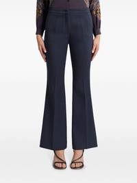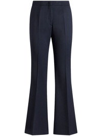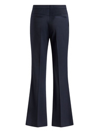 gabardine flared trousers Highlights - Navy blue - Stretch-design - Gabardine weave - Concealed front fastening - Pressed crease - Two side slit pockets - Two rear jetted pockets - Flared design Made in Italy Composition Polyester 52%, Wool 44%, Elastane 4%