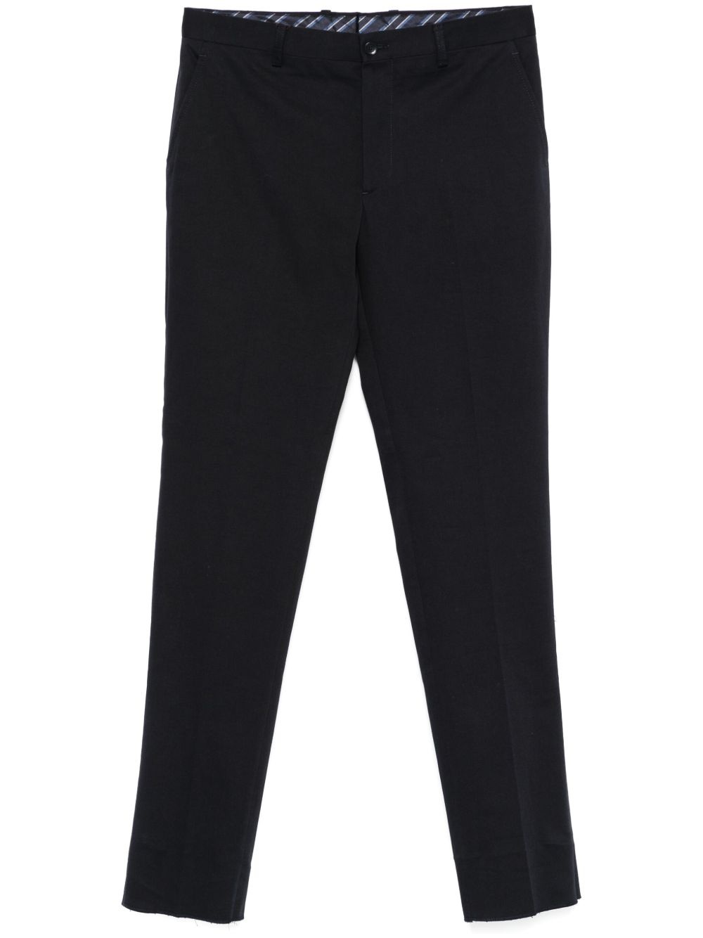 gabardine trousers Highlights - Prussian blue - Concealed fly and button fastening - Two side slash pockets - Two rear button-fastening jetted pockets - Belt loops Made in Italy Composition Cotton 98%, Elastane 2% SIZE & FIT Model measurements Height 6 ft 2 in(1.87 m) Bust/Chest 37.79 in(96 cm) Hips 37.79 in(96 cm) Waist 30.31 in(77 cm) FittingInformation Designed for a slim fit, offering a comfortable fit that sits just away from the leg Made from a midweight stretch fabric, this piece offers elasticity and flexibility when worn