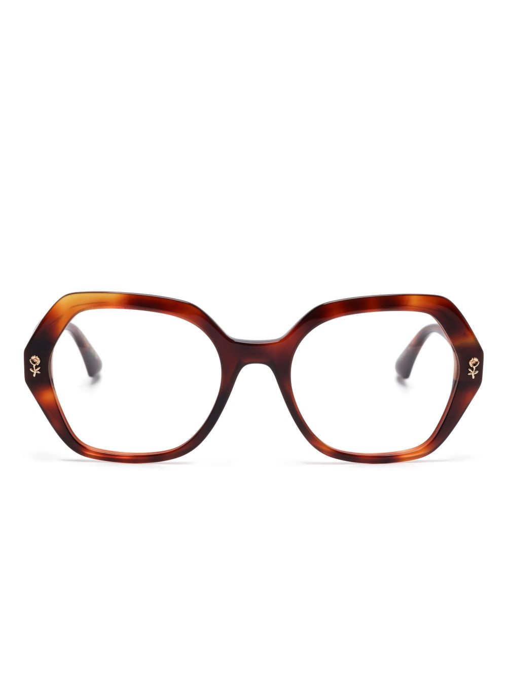 geometric-frame glasses Highlights - Brown - Geometric frame - Logo print to the side - Straight arms - All glasses from farfetch are sold as non-prescription frames. - These glasses come with a protective case. Made in Italy Composition Outer: Acetate 100% SIZE & FIT Measurement Arm Length 5.7 in(14.5 cm) Bridge Width 0.55 in(1.4 cm) Lens Diameter 1.92 in(4.9 cm) Total Width 5.31 in(13.5 cm)