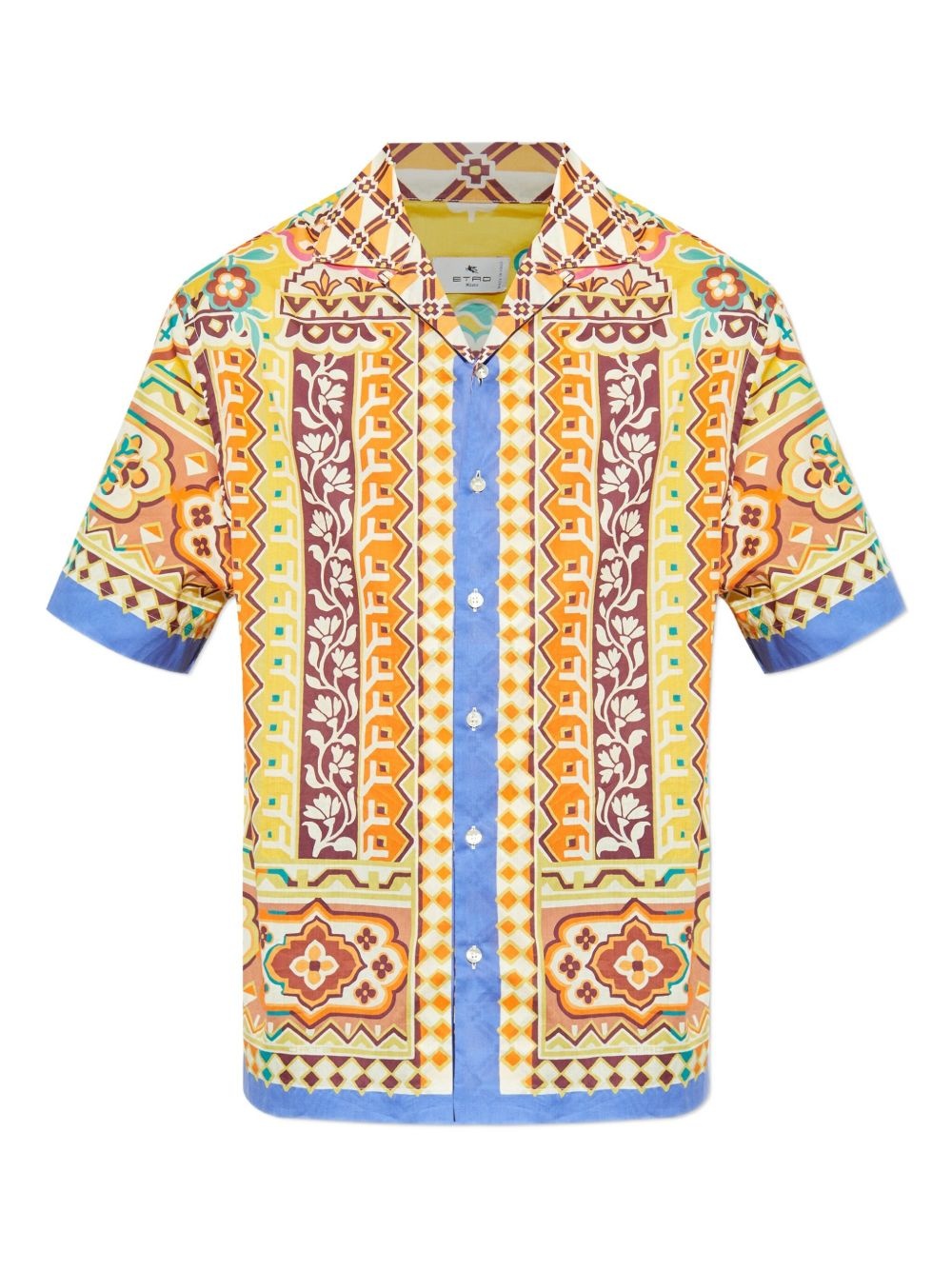 geometric-patterned short-sleeve shirt Highlights - Yellow/multicolour - Short sleeves - Camp collar - Button fastening - Geometric print Made in Italy Composition Cotton 100% Washing instructions Read Manufacturer Guidelines